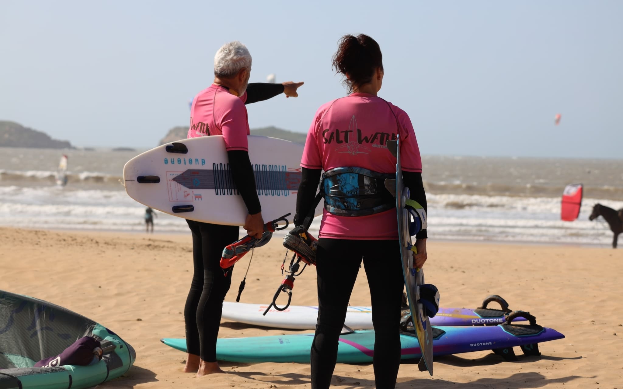 Essaouira est un terrain de jeu idéal pour les amateurs de glisse. Sa baie protégée et son vent régulier offrent des conditions parfaites pour le surf, le kitesurf, le windsurf ou le wingfoil. Les débutants profitent d’un environnement sûr et doux, tandis que les riders expérimentés s’épanouissent dans des sessions intenses face aux îles de Mogador. En paddle, on découvre la ville sous un autre angle, entre lumière, mer et horizon. Une expérience sportive et apaisante, accessible toute l’année. Essaouira c’est aussi 300 jours de vent par an, offrant des conditions idéales pour la pratique de kitesurf, du wing foil, du windsurf et du surf. Notre base nautique SALT WATER ELEMENTS est équipé avec le matériel de l’année de la marque DUOTONE.